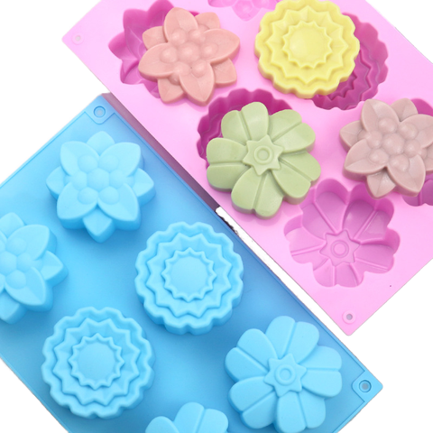 Yongli dễ dàng để demould chịu nhiệt độ cao 6 lỗ hoa hình dạng Silicone khuôn xà phòng để làm khuôn xà phòng bánh